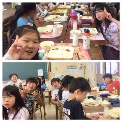 あちこちで楽しそうな話し声や笑い声が聞こえ、和やかな雰囲気で給食の時間を過ごしていました。