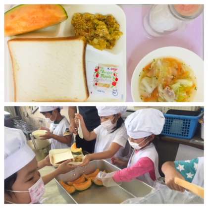 今日の給食室は、メロンの甘い香りでいっぱいです。