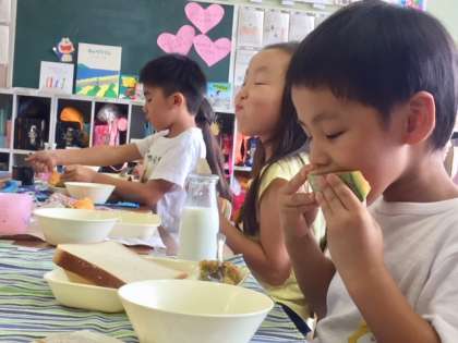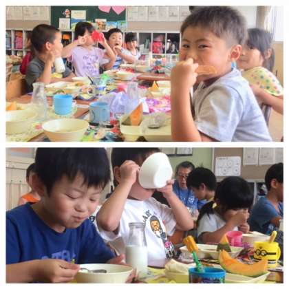 と、お友だち同士で話しながら、楽しそうに給食を食べていました。