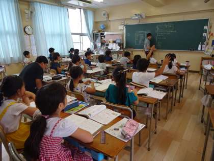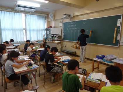 グループにわかれての学習に、子ども達は意欲的に発表をし、練習問題に取り組んでいました。