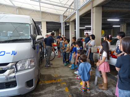 車が急ブレーキをかけてからどのくらい進むのかを実際に見せてもらったり、車の中から見た死角について教えてもらったりするなどしました。