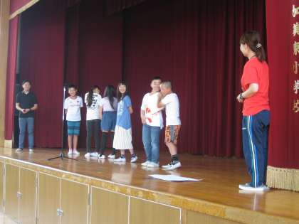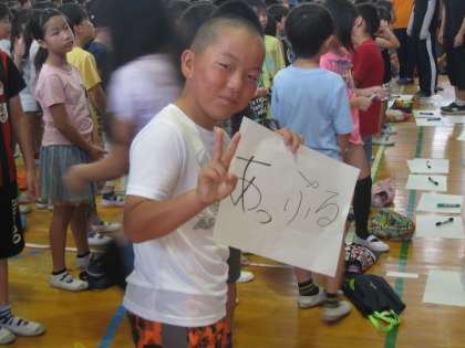 今日の英語集会は、「English伝言ゲーム!」でした。6年生のEIFメンバーでお手本を見せてくれました。友だちの声に集中して、クラスで英語を伝えていきました。問題の答えは「ハッピー」でした。カタカナやアルファベットで正解を書くことができました。