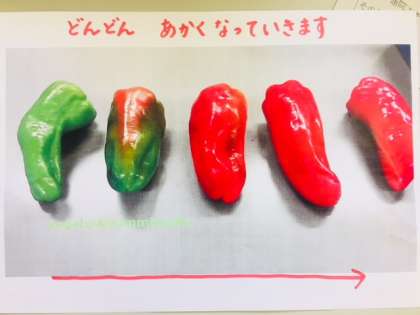 どんどん赤く変身するピーマンの写真を見て、声を出して驚いている子もいました。