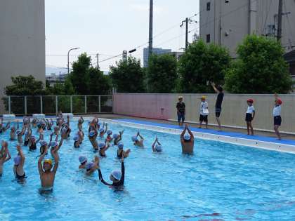 3年生は3つのコースに分かれて、みずなれの活動をしました。子ども達は久しぶりのプールということもあり、とても楽しんで活動していました。