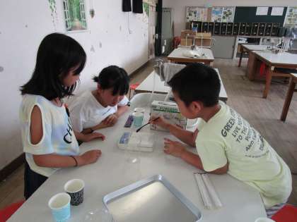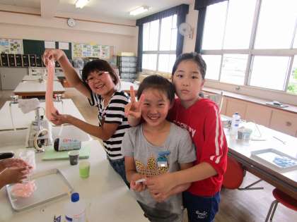 作ったあとは、伸ばしたり、縮めたりして子どもたちは楽しく活動していました。