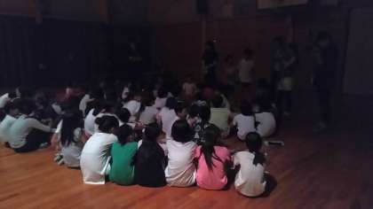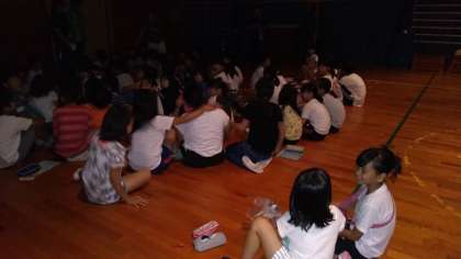 ハガキを書いた後、ナイトハイクの代わりに怖い話大会をしました。