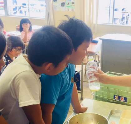 調理員さんから、使わなくなった「ゆず果汁」を分けてもらい、香りを楽しみました。