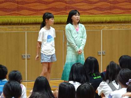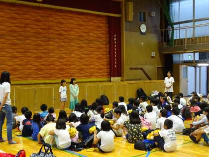 大雨の影響で予定していた到着時間よりもかなり遅くなり、子ども達もつかれた様子で帰ってきましたが、帰校式が始まると静かに話を聞いて最後までがんばろうとしている子ども達の姿が見られました。