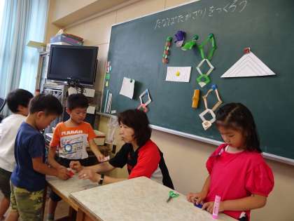 1年生は七夕のかざり作りをしました。