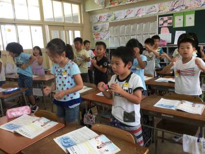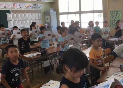 1組では、「イルカはざんぶらこ」を元気よく歌いました。