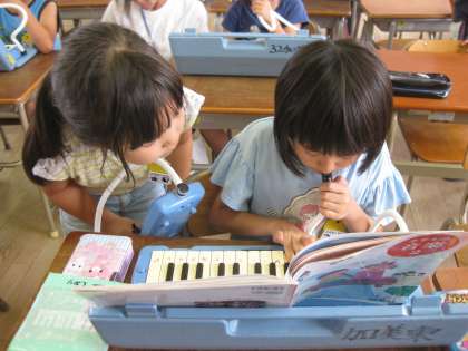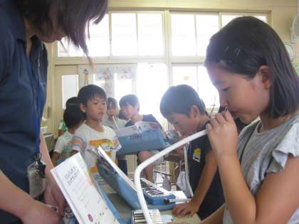 2組では鍵盤ハーモニカで「かっこう」を演奏しました。