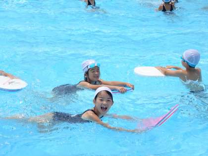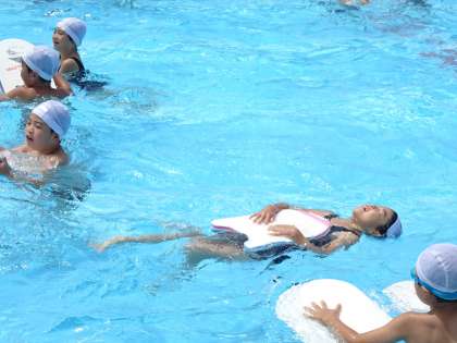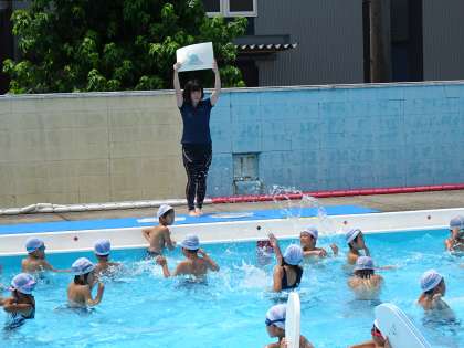 2年生の子ども達は今日も元気にプールに入って学習を楽しんでいます。