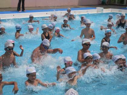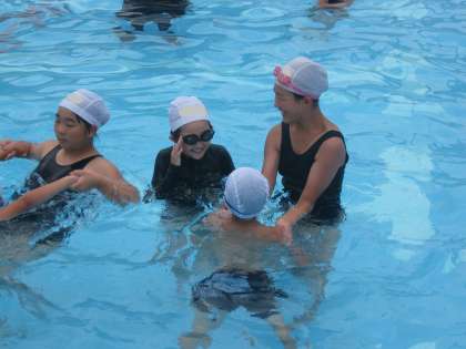 プールが苦手な1年生もお兄さん、お姉さんの声かけをよく聞いて楽しく活動できました。