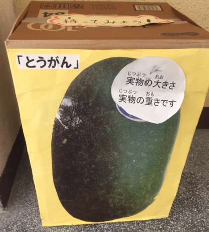 実物の大きさ、実物の重さで作った「とうがん」を展示しました。