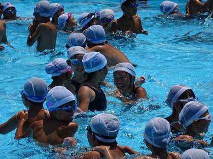 1学期最後の水泳学習、5年生の子ども達は今日も泳ぎの練習をがんばっていました。