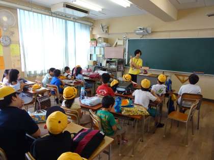 子ども達は、それぞれの分団に分かれて、登校時の役割や決まり、集合時刻などを確認しました。担当の先生とともに、安全な登校や集団下校の大切さについて考えることができました。