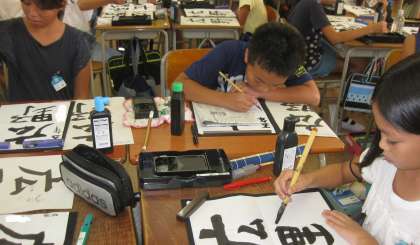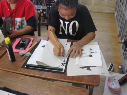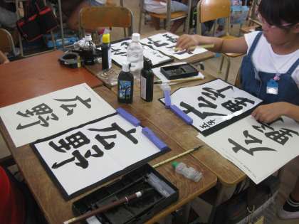 2学期最初の書写は、「広野」でした。それぞれの漢字の中心を意識して、バランスよく書けるように、グループで鑑賞しながら丁寧に書きました。グループでアドバイスすることで、良い姿勢で書くことができました。