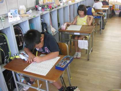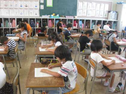 今日のテストのために何日も前から漢字の勉強に励んできた子ども達が多くいました。テスト中には、いつもに増して真剣に、そして集中して取り組む子ども達の姿が各学年で見られました。