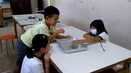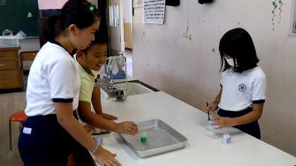 科学クラブでは「入浴剤ロケット」を作りました。発泡性の入浴剤をフィルムケースの中に入れて、発生したたくさんのガスの力で、ロケットを飛ばしました。子ども達は、うまく飛ばせるように考えながら、安全に気をつけて活動に取り組んでいました。