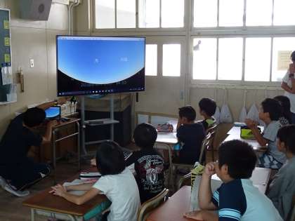 星の動きを予想した後に映像で星の動きを確認すると、子ども達は食い入るように画面を見て、自分の予想と照らし合わせていました。