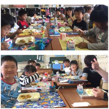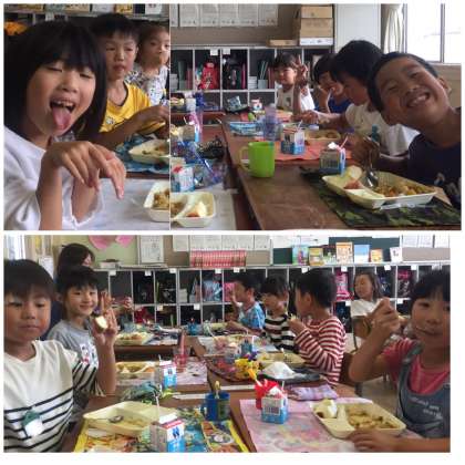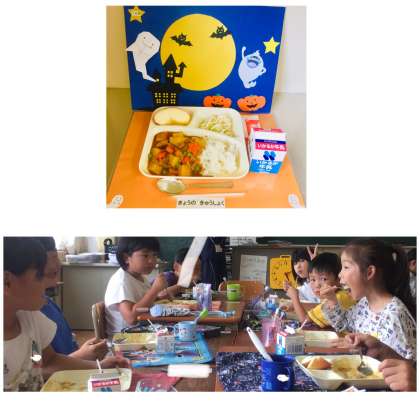 今日も調理員さんが、「星形のラッキー人参」をたくさん作ってくれました。「ハロウィンかぼちゃの形をしたラッキー人参」も入っていて、子どもたちは大喜びでした。