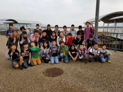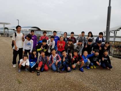 志摩マリンレジャーにて、乗船前にクラス写真を撮りました。