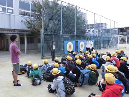 帰校式の様子です。迎えに来てくださった保護者の方や教職員に元気にあいさつした後、それぞれの思いをむねに、子ども達は帰っていきました。