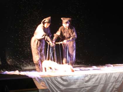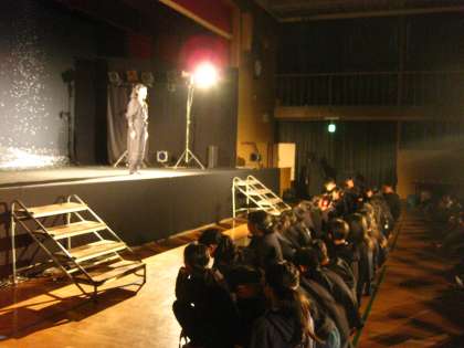 5時間目は芸術鑑賞会でした。日本の伝説、民話をモチーフに人形で表現された舞台芸術を子どもたちは楽しく鑑賞していました。終盤には6年生全員が出演し、劇団の方々と一緒に作品を演じました。