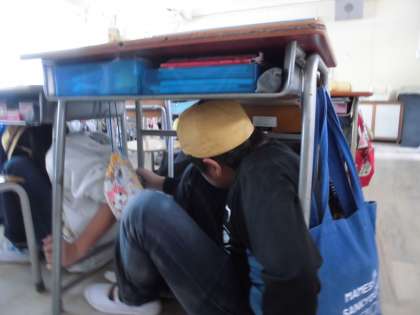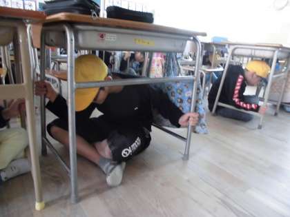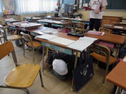 地震が起きたことを想定して訓練を行いました。「安全で速やかに行動する」をめあてにそれぞれの教室で学習し、訓練に臨んでいました。本当に地震・津波が起きた時にどのように行動すべきか、子どもたちは緊張感をもって避難訓練に取り組んでいました。