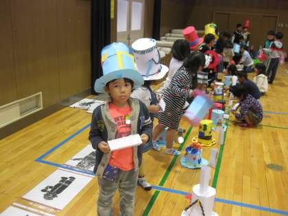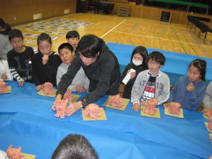 明日からの作品展に向けて、搬入、展示を行いました。子ども達は、一生懸命作った作品を先生の話を聞きながら準備することができました。