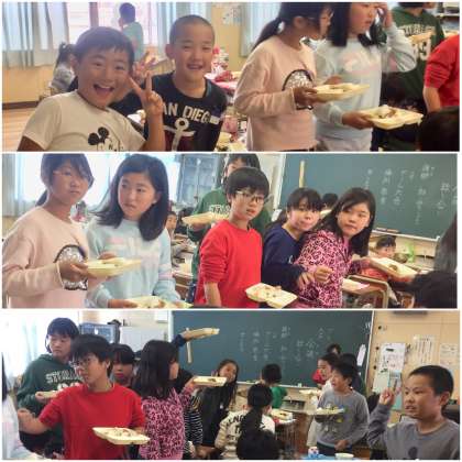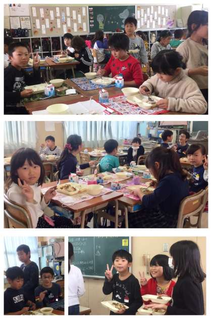 和やかな雰囲気の中、楽しく給食の時間を過ごしていました。