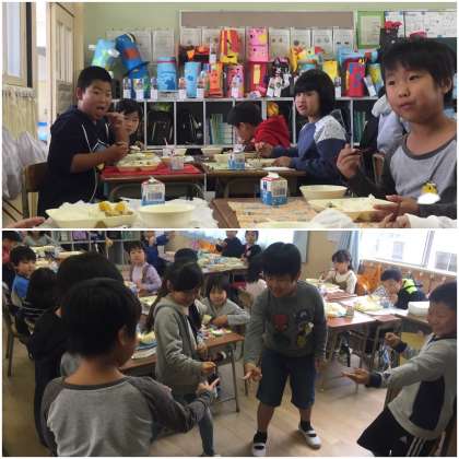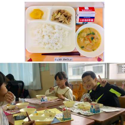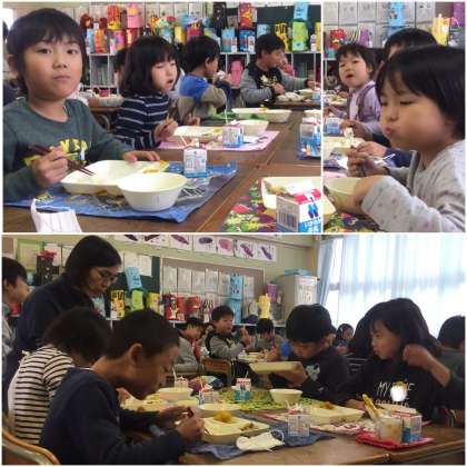肌寒い日が続いていますが、2年生の教室では「牛乳のおかわりジャンケン」で、元気な声が響いていました。