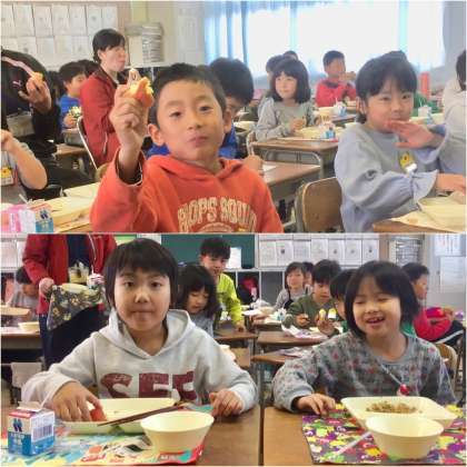 給食でも色々な種類のりんごが出るので、名前や味、色などを楽しみながら、りんごが好きになってくれると嬉しいです。