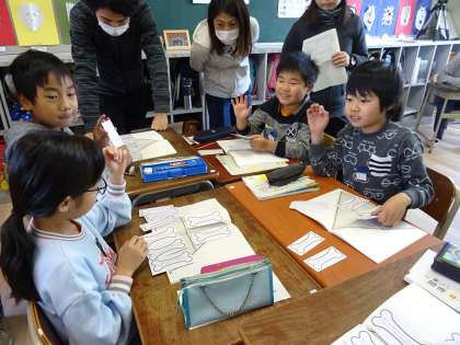 盲導犬の働きについて、教科書に書かれている大事な部分を読み取り、さらにその部分を要約するといった学習をしました。うまく要約するためにどうしたいいかを友達と相談したり、班で自分達の考えを話し合ったりして、学習を深めていました。