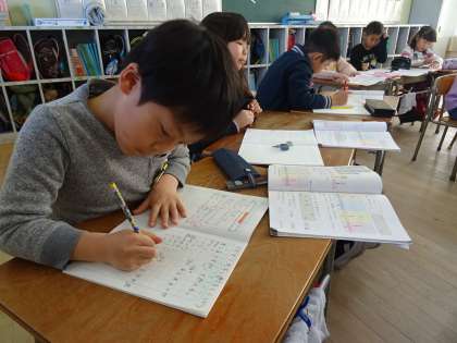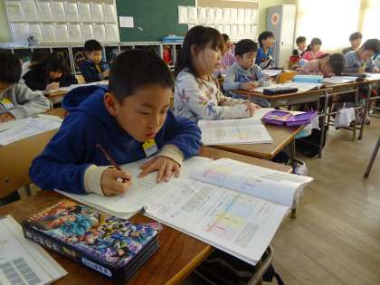 桁数が大きくなっても、「千の位」「百の位」「十の位」「一の位」にきちっとわけて数字を読むことができていました。子ども達は意欲的に発表をしたり、友達と教えあったりするなどして学習に取り組んでいました。