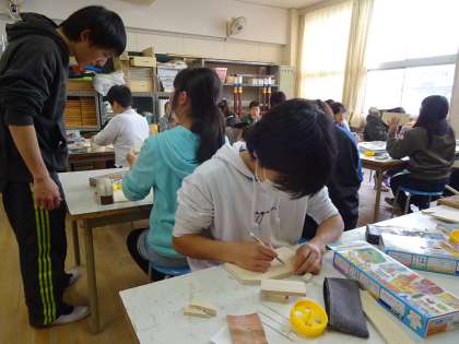 6年生の図画工作科の学習では、テープカッター作りをしています。