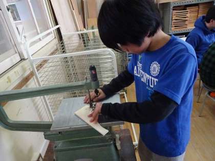 子ども達は電動のこぎりを使って板を上手に切ったり、板に思い思いのイラストを描いたりして、集中して作業に取り組んでいました。