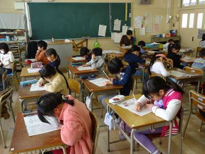 テストが始まると最後まで真剣に取り組む子ども達の姿がどのクラスでも見られました。