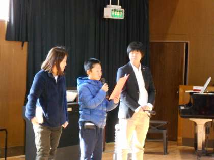開式の会では、記念品の交換や互いの学校を紹介し合うなどし、5年生の子ども達は、歌やリコーダーを演奏して、第二実験小学校の皆さんに発表をしました。
