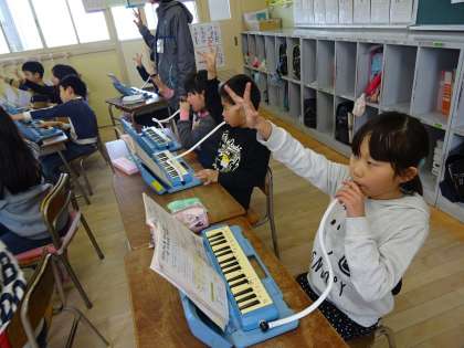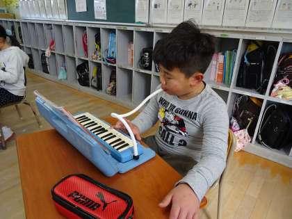 2年生の音楽の学習では、鍵盤ハーモニカの練習をしました。
