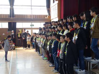 在校生のみんなで、6年生にむけた呼びかけや歌のプレゼントをしました。