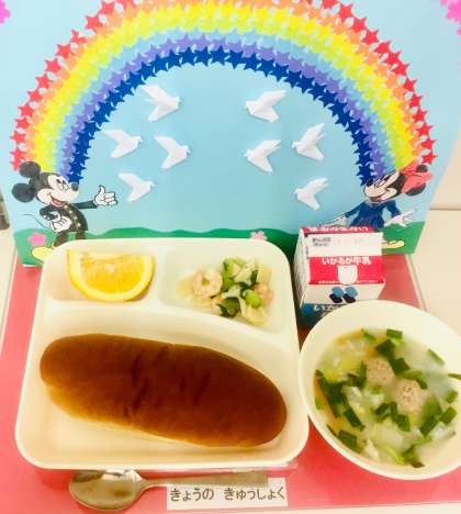 具だくさんの中華がゆは、彩りも良く、体が温まり、子どもたちに大好評でした。