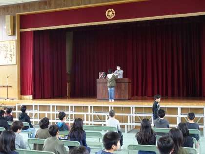 今日は卒業証書の授与の仕方、決意発表の練習をしました。