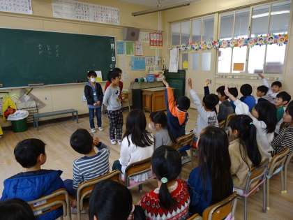 1年生のクラスでは、お楽しみ会をしてみんなで楽しい時間を過ごしていました。
