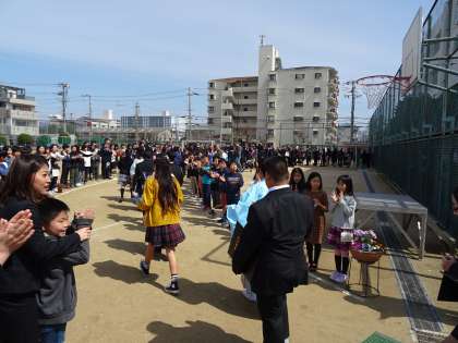6年生の子ども達は、みんなから祝福の声をかけてもらいながら花道を通って、学校を巣立っていきました。