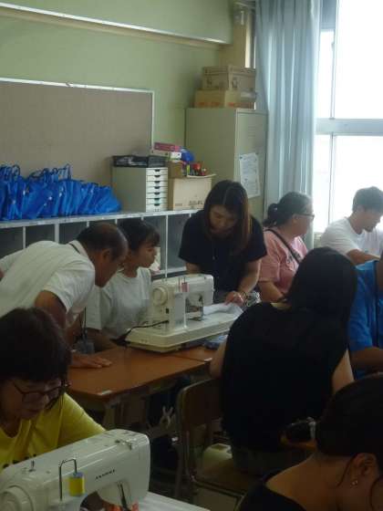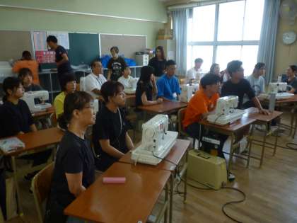 ミシンの持ち方・ふたの置き方から始まり、針のつけ方や糸の通し方など安全面を第一に具体的な操作方法を学びました。最後はぞうきんの縫付けをしました。