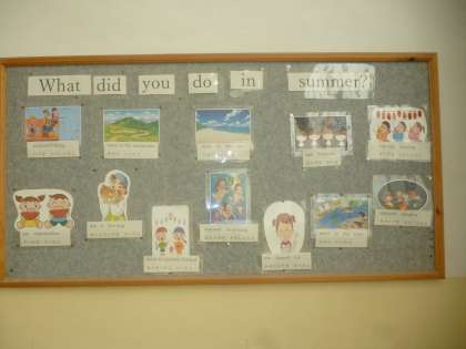 踊り場の掲示板には夏に関する英語が書いてあります。