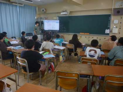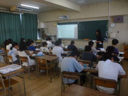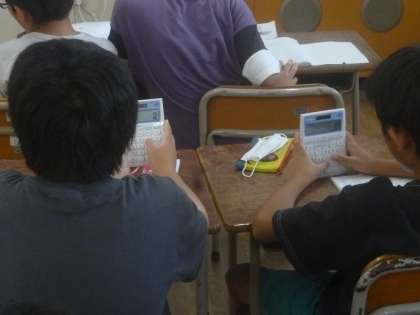3つのグループに分かれて、クラスごとのとんだ回数を度数分布表に表していました。また、割合を出す時には電卓を使う学習もありました。