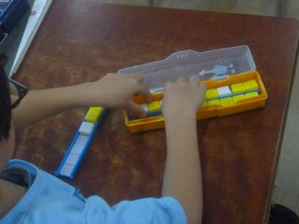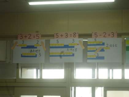 ブロックを使ってやってみました。教室横にはブロックの掲示がありました。