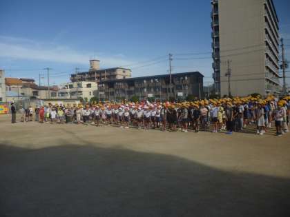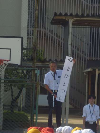 校長先生から、今日は涼しくなりましたがまだまだ暑い日が続くので熱中症など水分補給をしっかりとり、運動会練習では「心をひとつに」という話がありました。